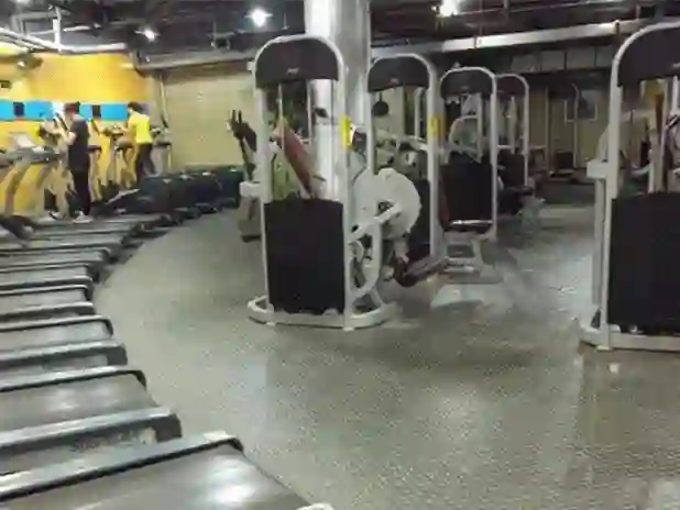 浩沙阳光店离欧陆店不到1公里,位于社区地下二层与三层,整体面积大过欧陆店,有泳池。阳光店设备陈旧,室内通气效果欠佳,跑步机坏了很多,器械未清洁,全是无数人使用过后留下的汗渍。4月份时还有一两个教练在带会员锻炼,5月份只剩下一位员工负责前台。由于系统不能使用,会员不用刷卡直接进场。店内陆续停止游泳、停止供应热水。
