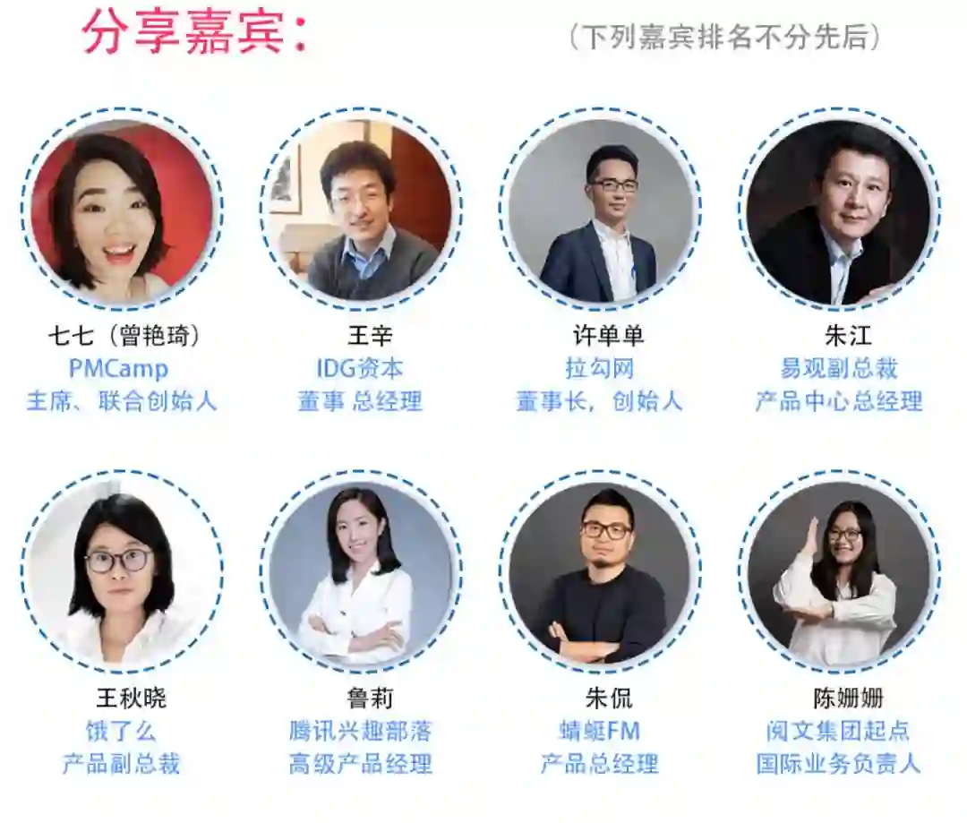 易观方舟、讯飞输入法、蜻蜓FM、哔哩哔哩、哈罗单车、世纪佳缘、爱奇艺、兴趣部落、虎扑在线的产品总监们,带着对成就梦想产品的执念,也加入了我们。