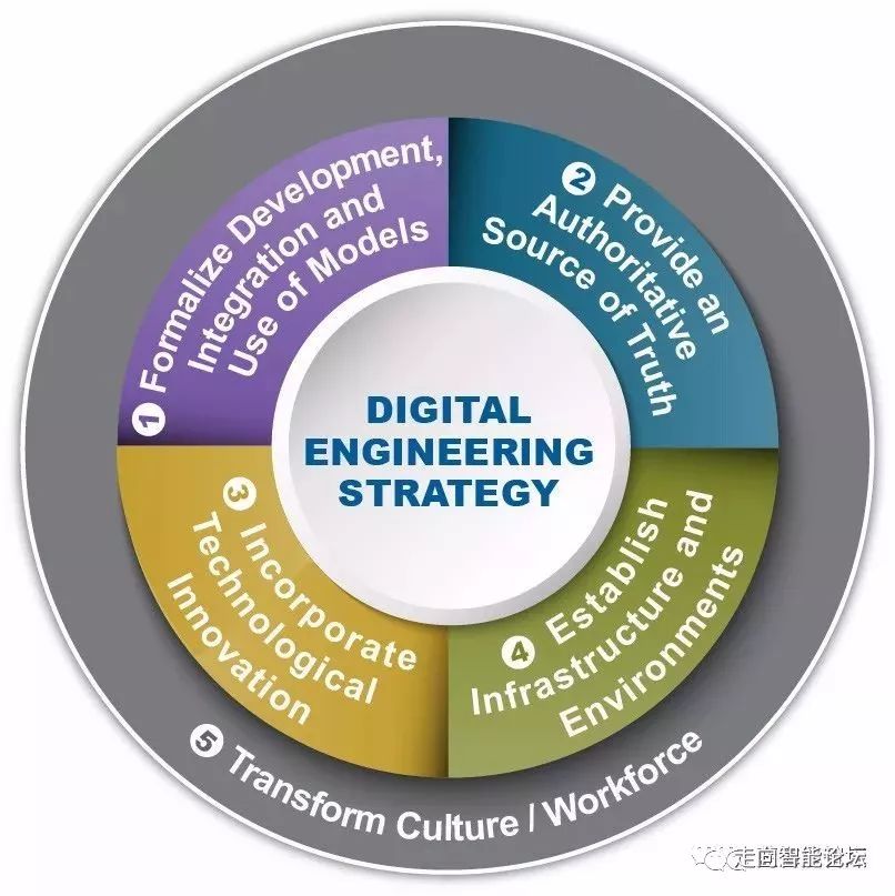 2016年,美军提出了数字工程战略目标,五大战略目标是:规范模型的开发、集成和使用以支撑复杂组织体和计划/项目的决策;提供一个可信的单一真相源;融入技术创新以提升工程实践;建立支撑的基础设施和环境以在利益相干方中实施各项活动、协同和沟通;转型为一种文化,工作人员接受并支持跨寿命周期的数字工程。数字工程战略将聚焦7项任务:定义、实施、政策和指南、工作人员发展、合同签订、衡量准则、转型管理。同年11月美军制定了数字工程教育与培训课程,包括数字工程概念、为数字工程生态系统做准备、面向采办的考虑、使用数字技术物获得一致性、案例5门课程,为美军各层级相关人员理解数字工程转型提供支持。