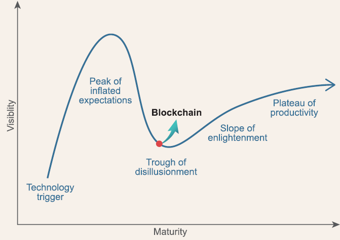 甘国华:我认为区块链的发展基本符合美国高德纳咨询公司提出的技术成熟度曲线(The Hype Cycle),热炒概念的过热阶段已经过去,进入到行业稳定繁荣之前的低谷期。目前,中国对虚拟货币严格管理,币圈发展受限,而链圈正在向各个领域扎根和落实。我认为,在经过一段时间的技术积累和产业调整之后,到2020年左右,我们将可以看到区块链在各行业之中得到真正的应用。
