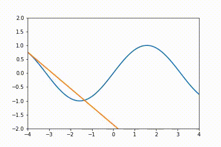 任务:绘制y= sin(x)曲线,并得到每个点切线的动画。