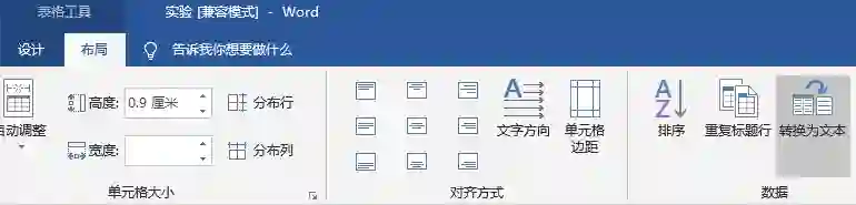 (1)打开word,将表格选中,选择“布局”-“数据”-“转换为文本”;