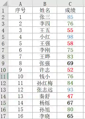 (3)同理,操作其他的数据,你会在原表格中看到“成绩”这一列已经按照我们的需求设置好了,实现了数据的分类表示。