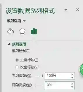 (3)设置数据系列,系列重叠“100%”,间隙宽度“0%”,效果如图;
