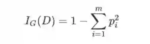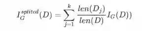 针对划分成k个子数据集的数据集的基尼不纯度可以通过如下式子计算: