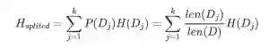 假设我们将数据集D划分成kk 份D1,D2,…,Dk,则划分后的信息熵为: