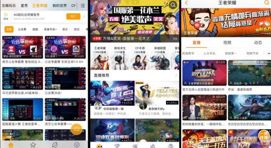 从左至右依次为虎牙、企鹅电竞、斗鱼
