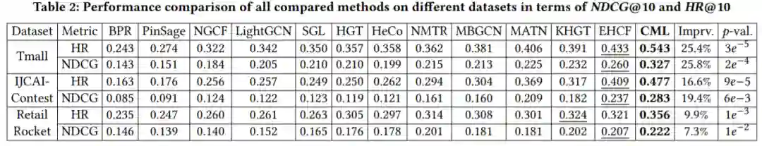 在CML框架中采用一种多行为对比学习范式,通过自监督原则捕捉不同类型用户交互的复杂依赖关系。该对比学习框架利用来自辅助行为的辅助监督信号促进主要的监督任务(即目标行为预测)。