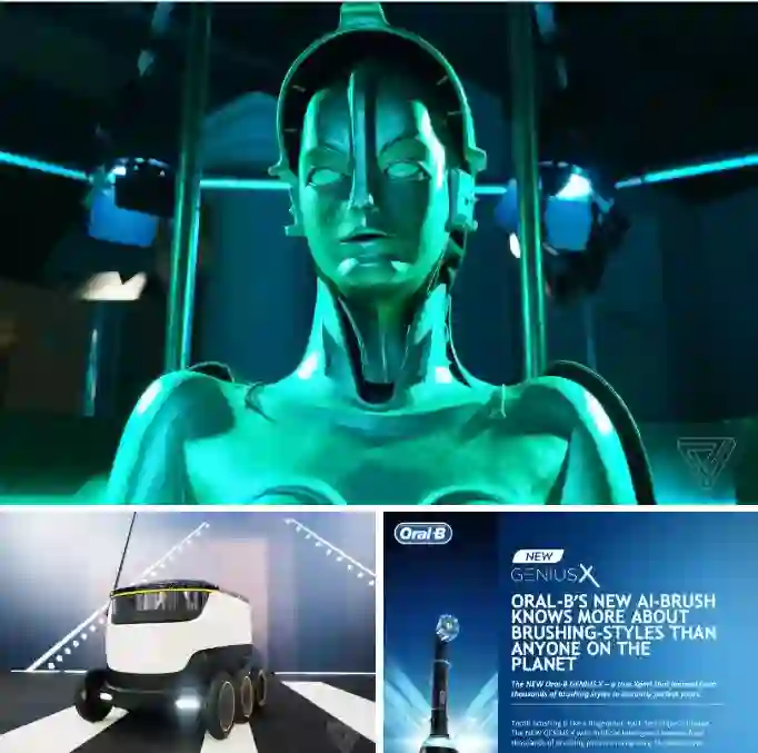 那么,究竟什么是AI?(上图由上至下,顺时针方向依次为:电影Metropolis的模型,Oral-B的AI牙刷,自动送货机器人。)