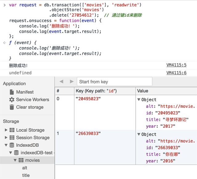 删除数据库则需要使用indexedDB.deleteDatabase(dbName)方法