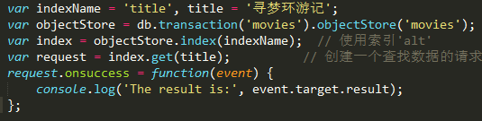 8.查找数据可以使用索引: objectStore.index(indexName)