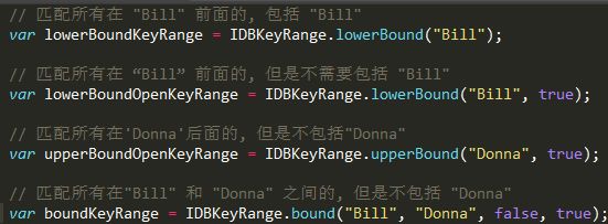 keyRange是限定游标遍历的数据范围,通过IDBKeyRange的一些方法设置该值: