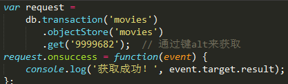 通过事务对象transaction,在objectStore()方法中指定对象存储空间,就得到了可以对该对象存储空间进行操作的对象objectStore.