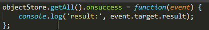 在indexedDB2规范中,在对象存储空间对象上纳入了一个getAll()方法,可以获取所有对象: