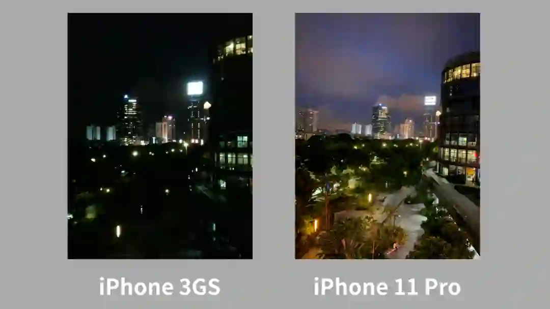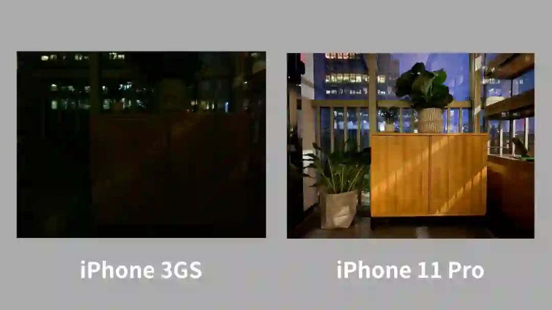 而 iPhone 11 Pro 记录能力的上下限就更高一些,一些 iPhone 3GS 拍出来后满是噪点的场景变得更加纯净,甚至在几乎没有自然光源的场景下,iPhone 11 Pro 依靠「夜间模式」的软件优化也能实现记录,再不济还有一枚后置闪光灯可以充当补光的作用。