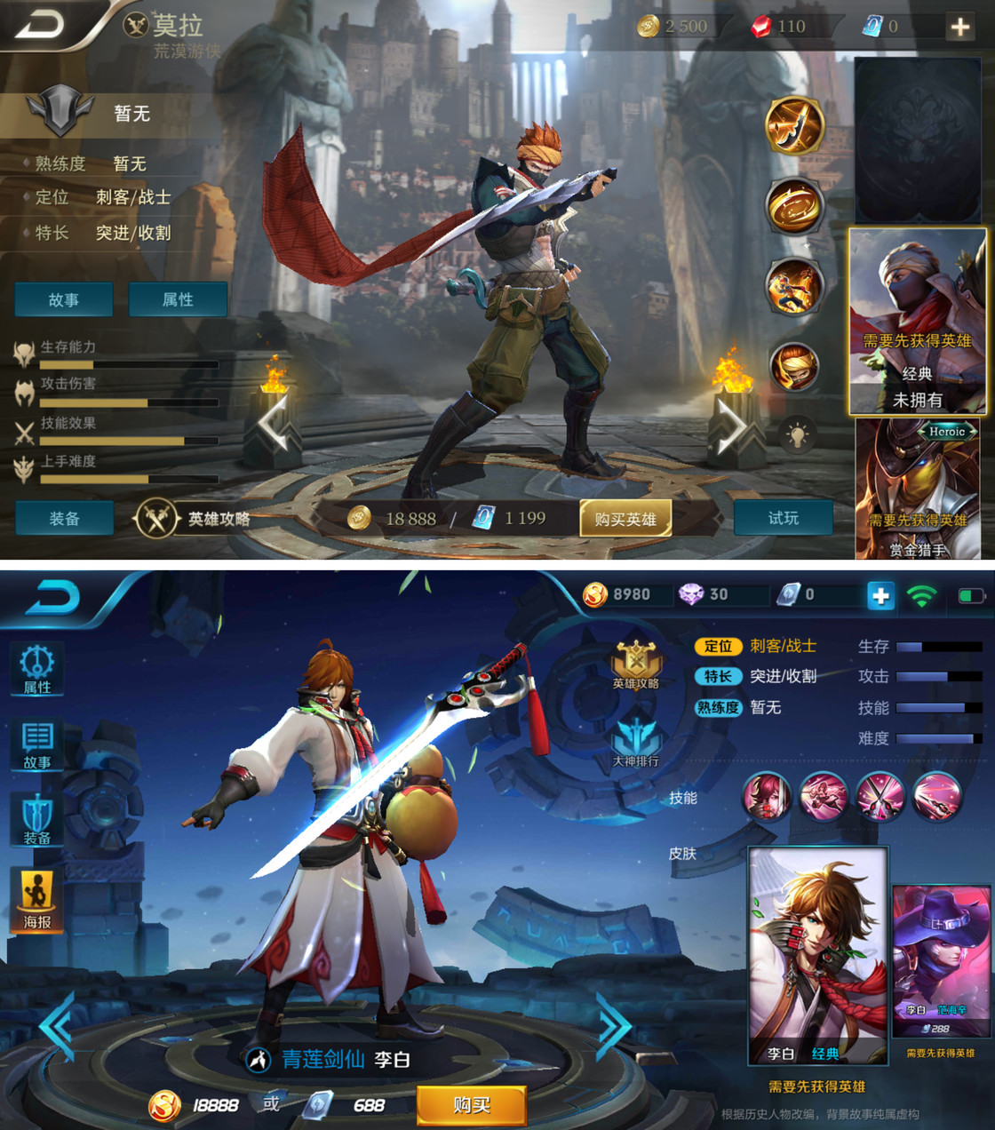 最后,一些定位相近的英雄,在数值上也小有差异。笔者并不是《王者荣耀》的资深玩家,在此就不深入探讨了。