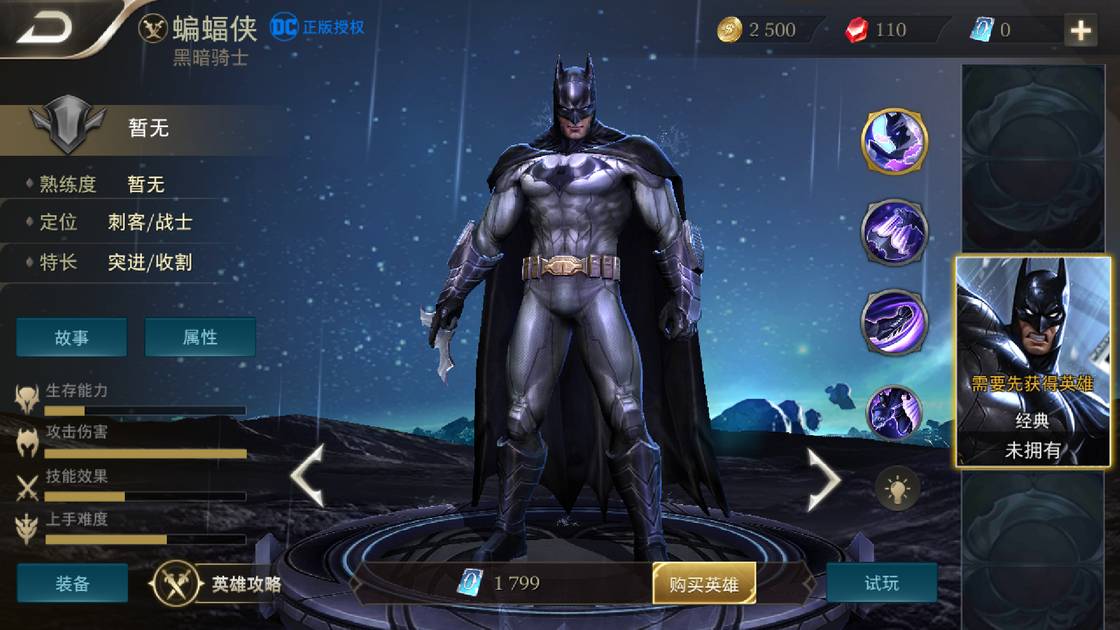 不过欧服还是有一些很有意思的英雄的,首当其冲的就是来自 DC 宇宙的超级英雄们 —— 是的,蝙蝠侠、超人以及神奇女侠等 DC 的超级英雄人物,均有在 Arena of Valor 中出现!而且上方还挂上了「DC 正版授权」的标识,毕竟腾讯也算是个大公司,在面对海外市场的时候,应该不敢在版权上乱来吧。