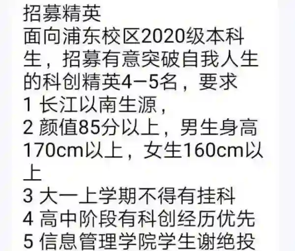前几日,有网友爆料称上海立信会计金融学院(以下简称“立信学院”)一教师在招募科创成员的公告中写道: