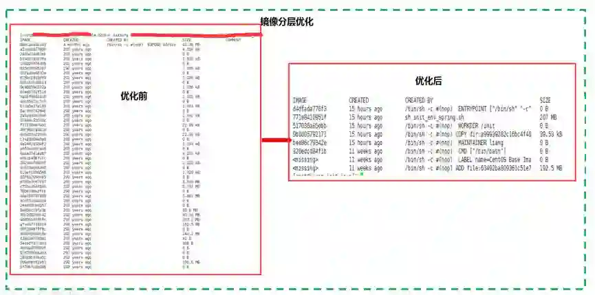 dockerfile构建应用镜像,在中间件层遇到一些需要安装的软件包时,尽可能的使用包管理工具(如yum)或以git clone方式下载源码包进行安装,目的是将软件包的copy和安装控制在同一层,软件部署成功后清除一些无用的rpm包或源码包,让基础镜像的尺寸更小。