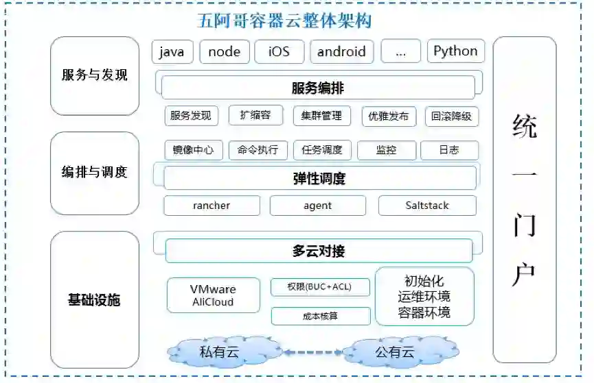 基于Docker容器技术,运维技术团队开发了五阿哥网站的容器云平台。通过容器云平台95%的应用服务已经实现容器化部署。这些应用支持业务按需拓展,秒级伸缩,提供与用户友好的交互过程,规范了测试和生产的发布流程,让开发和测试同学从基础的环境配置和发布解放出来,使其更聚焦自己的项目开发和测试。