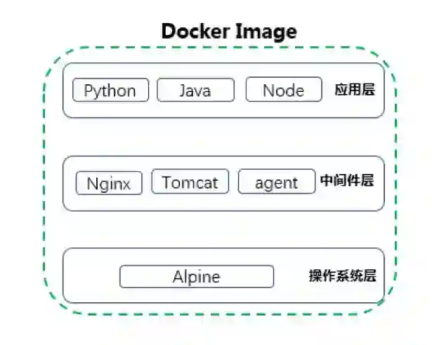 第一层是操作系统层,由CentOS/Alpine等基础镜像构成,安装一些通用的基础组件;