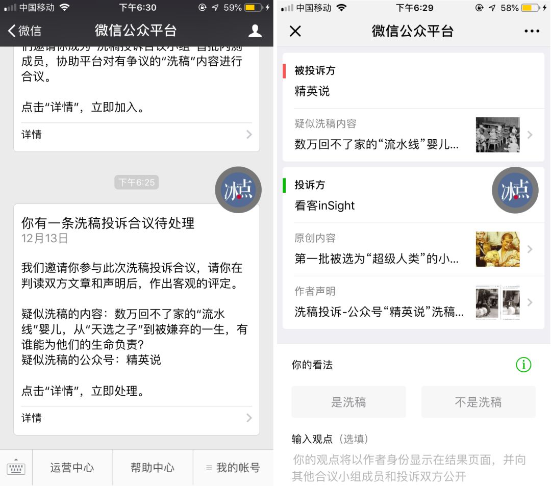 12月初,微信引入“洗稿合议机制”,邀请部分公号原创作者参与其中,协助平台对有争议的“洗稿”内容进行合议,一时引起诸多关注。