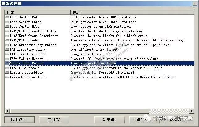 下面具体地介绍一下。单击WinHex的菜单项“视图”->“模板管理”命令,出现如图8所示的对话框。