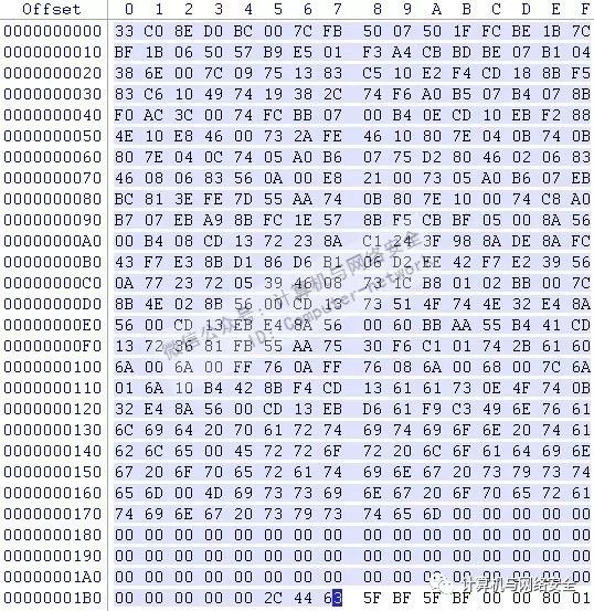 为了能写出程序,先进行一次对引导区的手动分析,使用的工具是WinHex。