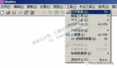 WinHex是一个强大的十六进制编辑工具,也是一个强大的磁盘编辑工具。打开WinHex,并打开磁盘,如图1、图2和图3所示。