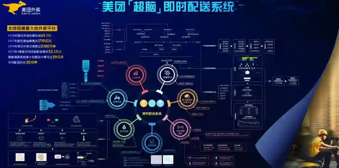 这种对真实世界的深度感知、理解和控制,与配送AI系统对配送场景的感知、理解和配送环节控制的目标非常一致。可以说,美团要建设的AI就是配送系统的“超级大脑”。因此我们内部把配送的AI系统,简称为“超脑”配送系统。