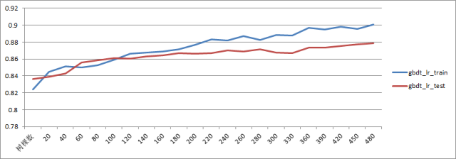 这是用 AUC 用来调超参的一个例子,横坐标是 GBDT 的树的棵数,纵坐标是对应模型收敛后在 test 集和 train 集上的 AUC 值,从图中可以看到在 120 棵树附近 GBDT 就开始出现过拟合情况了,不过两个集合的 AUC 都还在持续上升。除此之外,AUC 还可以作为一个在线监测的指标,用来时刻监测在线模型的表现。