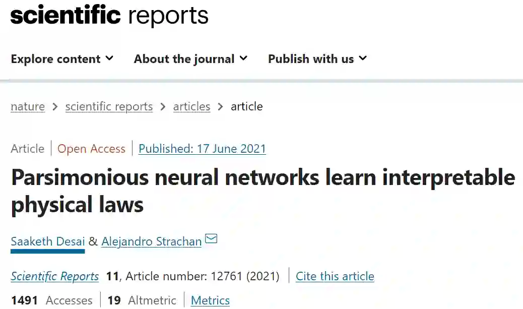 该研究以「Parsimonious neural networks learn interpretable physical laws」为题,发表在《Scientific Reports》上。