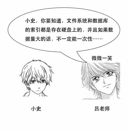 吕老师:小史,你要知道,文件系统和数据库的索引都是存在硬盘上的,并且如果数据量大的话,不一定能一次性加载到内存中。
