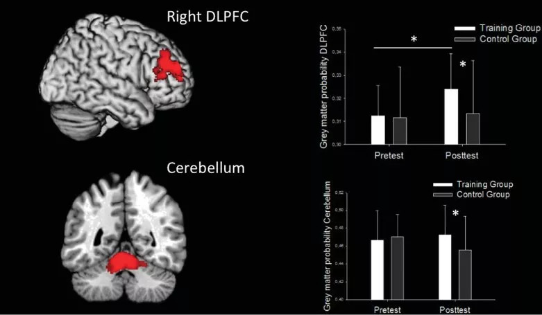 德国科学家研究发现:青少年在两个月内每天玩至少半个小时的《超级玛丽》,其右侧大脑的背外侧前额叶区(DLPFC)和小脑(cerebellum)中的灰质密度会增加,提示这些脑区在玩游戏的过程中得到了锻炼
