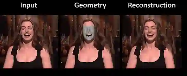 如下动图所示,最右边的重建人脸除了没有皱纹以外,身份特征和面部表情都和原图相当一致,阴影效果也高度还原。只是眼睛部分似乎不太对,显得浑浊无神。