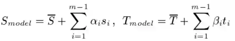 任意人脸模型均可以由数据集中的 m 个人脸模型进行加权组合,如下:
