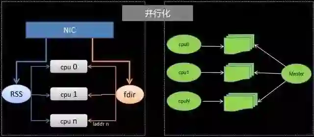 所以我们通过RSS技术把同一个五源组报文扔到同一个CPU上处理,保证入方向的所有相同连接上的报文都能交给相同CPU处理,每个核在转发出去时都用当前CPU上的Local地址,通过设置一些fdir规则,报文回来时后端RS访问的目的地址就是对应CPU上的local地址,可以交到指定的CPU上去处理,这样一条连接上左右方向报文都可以交给同一个CPU处理,将流在不同的CPU隔离开。