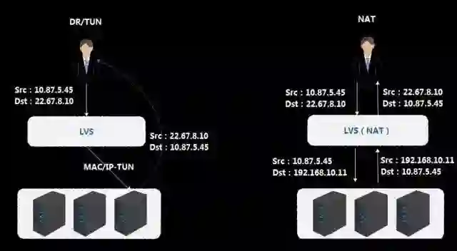 早期LVS支持三种模式,DR模式、TUN模式和NAT模式。