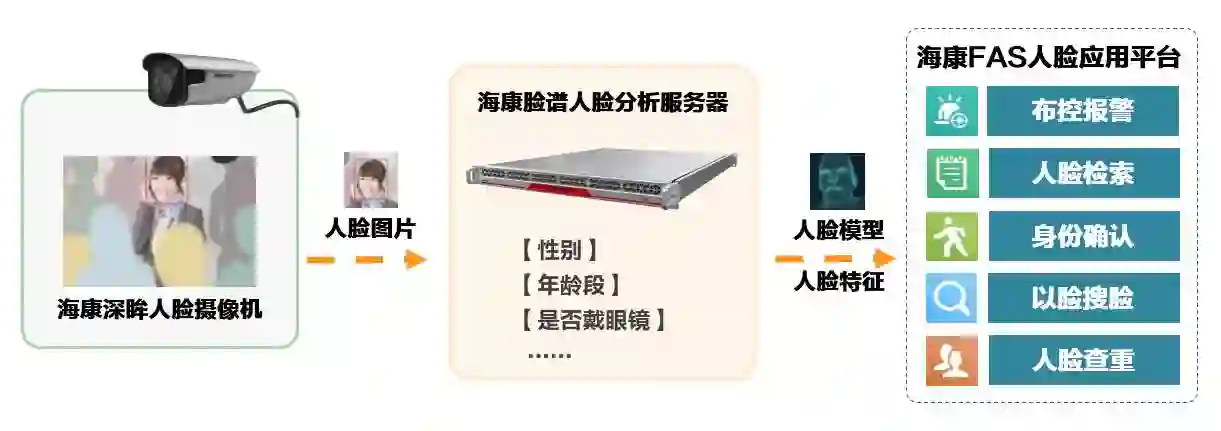 在深眸摄像机准确捕获人脸图片后,通过部署的海康脸谱人脸分析服务器,对抓拍的人脸图片以每秒数百张的速度进行实时分析、建模。同时,对接公安重点人员数据库,对重点人员进行实时布控。