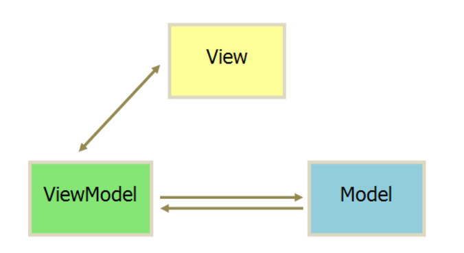 以MVVM为例,如下图所示。它包括Model(数据层或模型层)、View(视图层)、ViewModel(控制层)