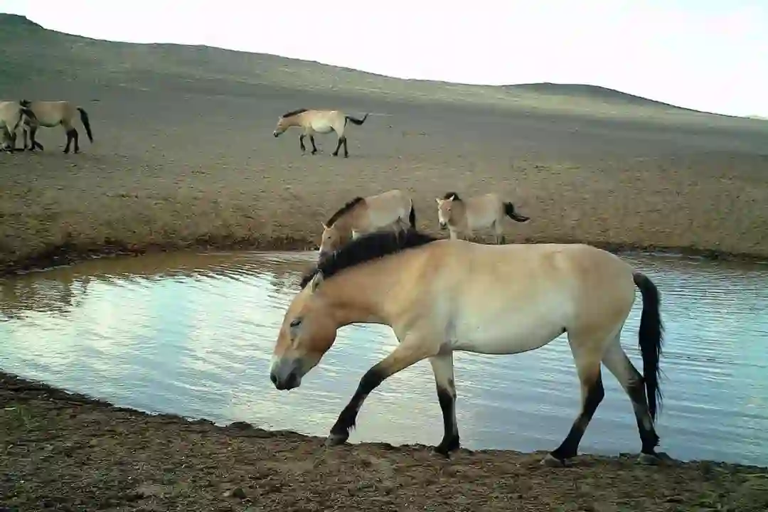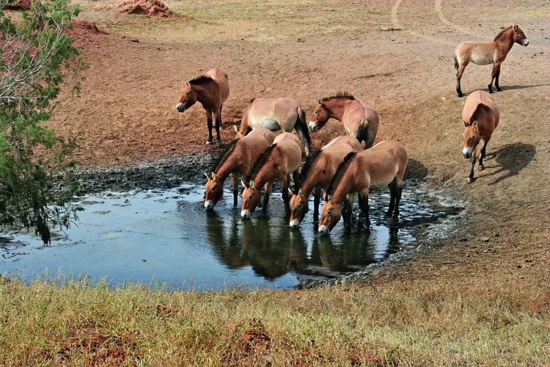 普氏野马是地球上野马的唯一现生代表。2001年在卡拉麦里自然保护区,27匹从国外引种回来的普氏野马回到了故乡,试着去适应它们的祖先曾经生活过的环境。至今,卡拉麦里自然有蹄类保护区一共实施了8次普氏野马放归,保护区内共生活着100多匹普氏野马,有11个家族群。