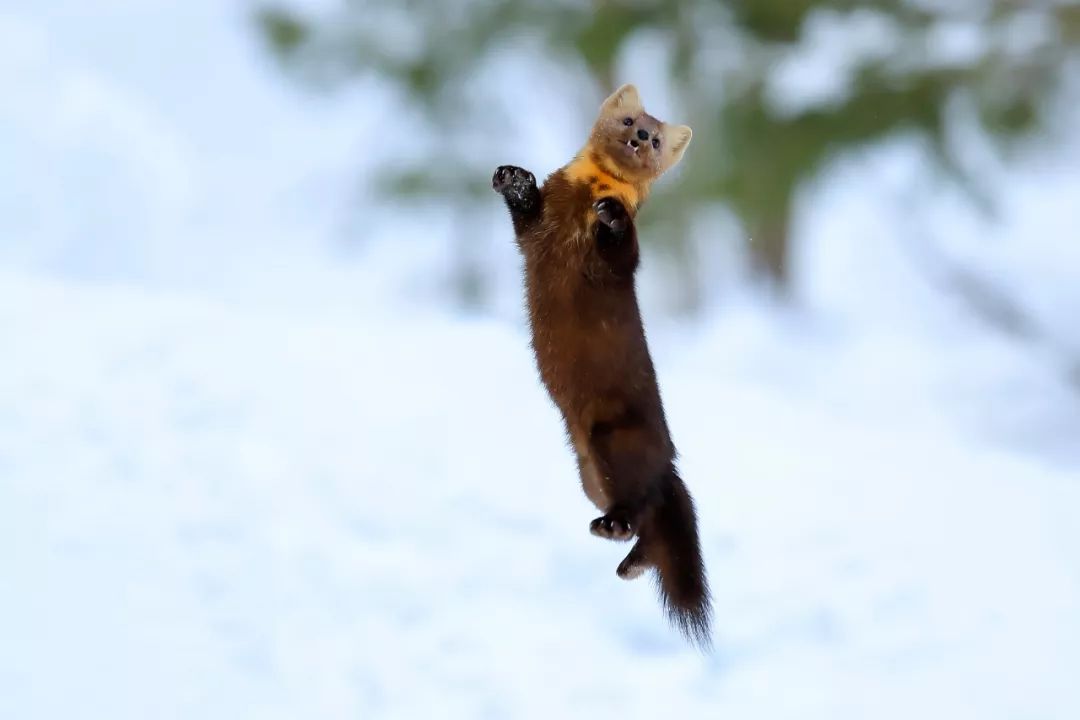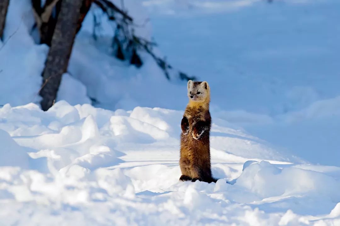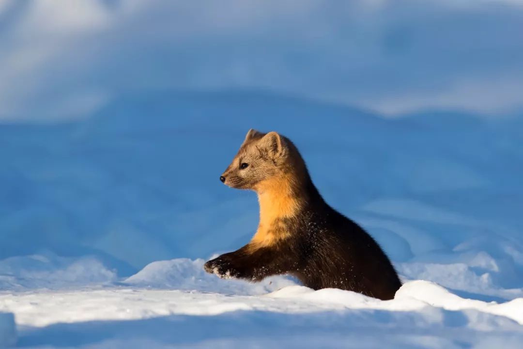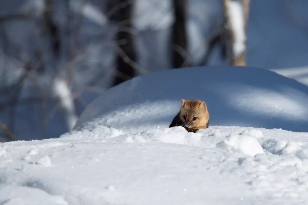初雯雯在阿尔泰山第一次见到紫貂,她对这种小动物的印象就是「小机灵鬼」,长着尖尖的耳朵和长长的眼睫毛,看到人的时候还会学着人类的样子,用后腿站立在地上,把前爪像人的胳膊一样垂直放下。