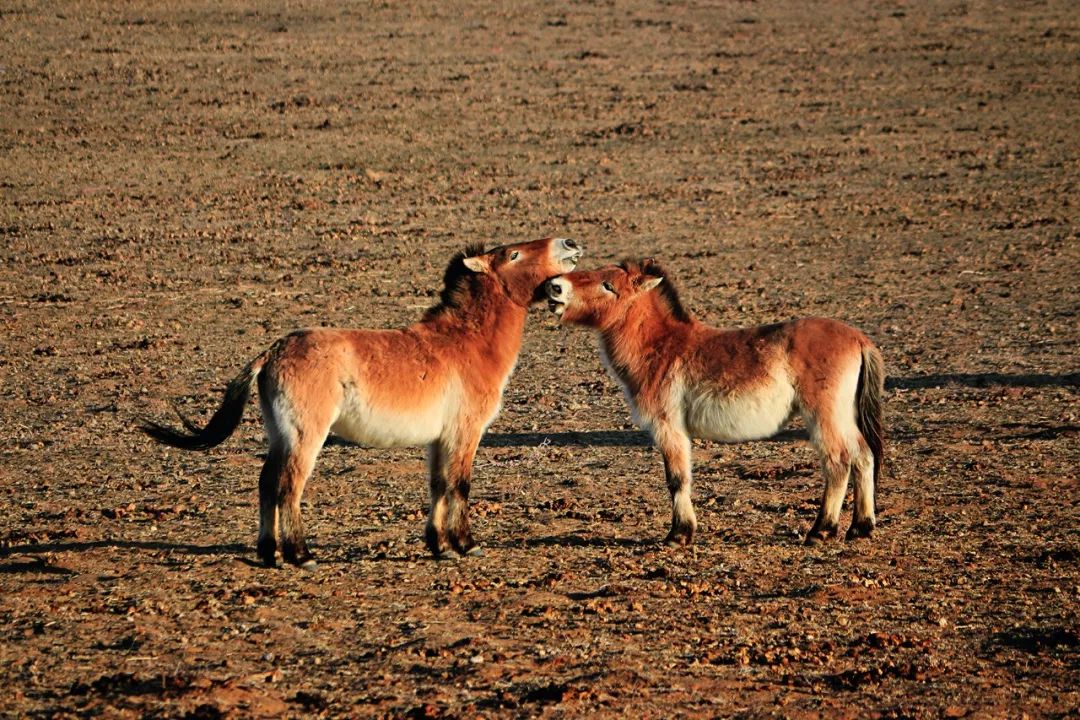 初雯雯说,普氏野马的生活就是「不断打怪升级的回家路」。在放出去之后的很长时间,初来乍到的普氏野马过得并不那么好——工作人员只给野马群配了一匹雄性普氏野马,但是这匹马打不过家马,导致整个马群都被一匹帅气的大家马拐跑了……