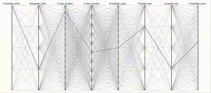 他们将其称为“模糊”,在这种情况下,这个十字路口会产生800个场景。软件会创建一个美丽的花边图表,工程师可依据其了解变体的不同组合会如何改变汽车最终采用的路径。