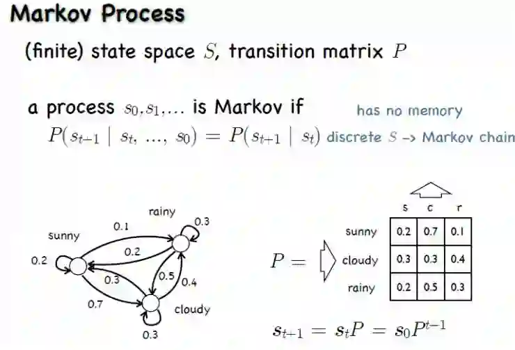 比如说天气,今天的天气是出太阳,确定了出太阳、多云和下雨的转移概率以后,可能到30天以后它出太阳、下雨还是多云的概率和今天是不是出太阳已经没有关系了,它会收敛到一个确定的概率分布上面去。