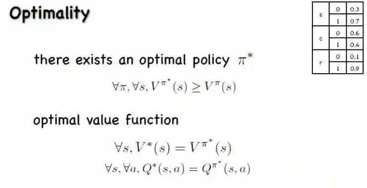 我们考虑最优策略的时候会想,是否会有一个策略在所有状态上表现都是最好的,还是只能找到在绝大部分时候表现都最好、但在个别状态上面值要差一点的策略。实际上前者是存在的,这个结论依赖于一个假设,即策略需要用表格来表示。因为用表格来表示的话,它的表达能力足够强。