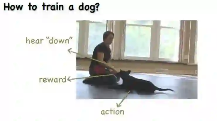 现在大家都在说人工智能,虽然可能难以精确的说清楚到底什么叫做智能,但我们知道拥有智能会有一些聪明的表现。例如像犬等一些动物,我们可能会认为是有一定智能的,我们可以训练一只幼犬听懂饲养员的指令。训练方法是:饲养员手里拿着食物,然后说“坐下”,当幼犬做出符合要求的动作时,就把食物给它。反复进行训练,大概半小时的时间,它就学会听见“坐下”的命令就坐下。这个过程就是动物的学习过程,它的智能就表现在它能在一定时间内发现如何适应环境,获得食物奖赏。
