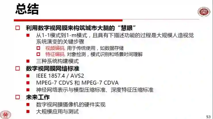 所以数字视网膜其实涉及到视频编码,特征编码也是一体化,叫MPEG CDVS。
