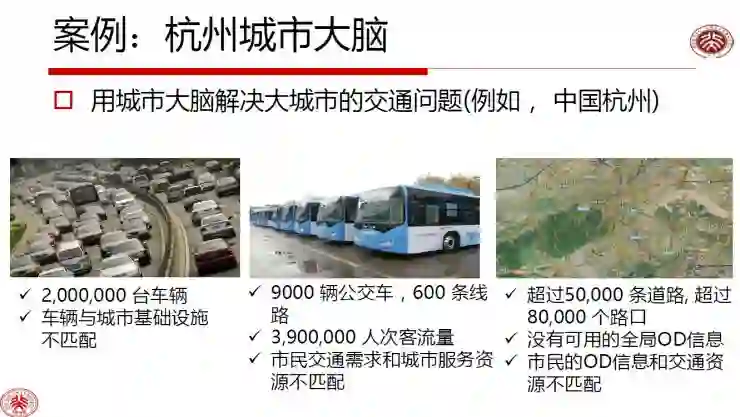 目前杭州大概有600多条线路、5万条道路、8万多个路口。这些路线上有着200万辆车,其中包括9000辆公交车,每天的乘客流量高达390万。
