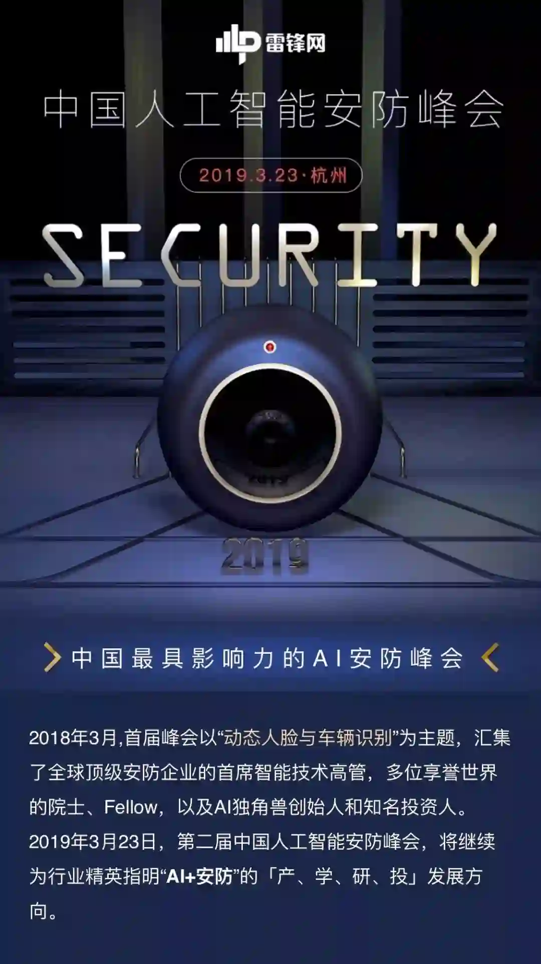 2018年3月23日,第二届中国人工智能安防峰会,将在杭州举办。大会以“城市大脑与边缘计算”为主题,汇聚以“海康、大华”为代表的传统安防企业,以“阿里、华为、京东”为代表的城市大脑领导者,以“AI独角兽”为代表的人工智能新锐力量,同时联合政、企、学、研、投、媒六界顶层资源,为行业精英指明AI+安防的发展方向。